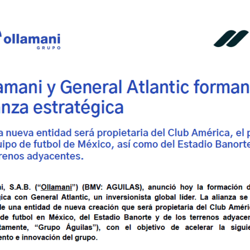 Ollamani, empresa mexicana (sociedad controladora) que además de ser propietaria de varios inmuebles, a través de sus subsidiarias, es propietaria de los siguientes negocios: Club América, equipo profesional de fútbol con más campeonatos en México; Estadio Banorte, considerado el estadio más grande del país y de los más importantes a nivel internacional; PlayCity, uno de los principales negocios de juegos y sorteos en el territorio; Editorial Televisa e Intermex, que representan el negocio editorial y de distribución de medios impresos.